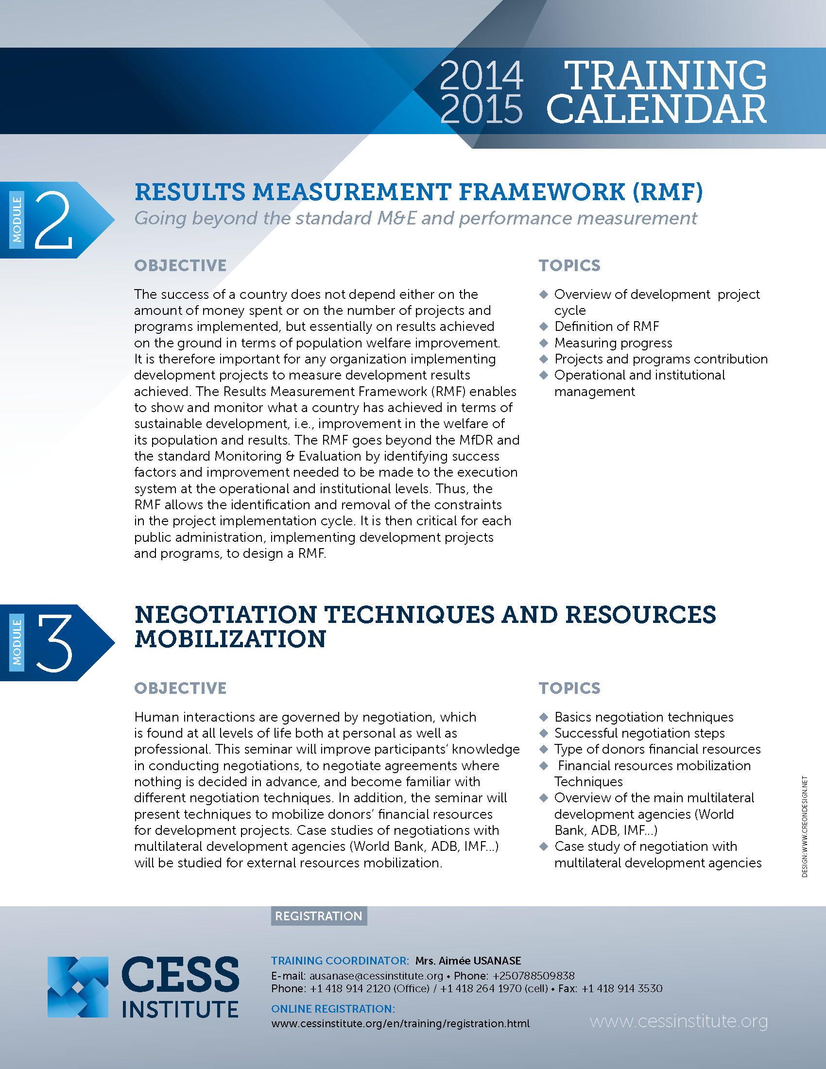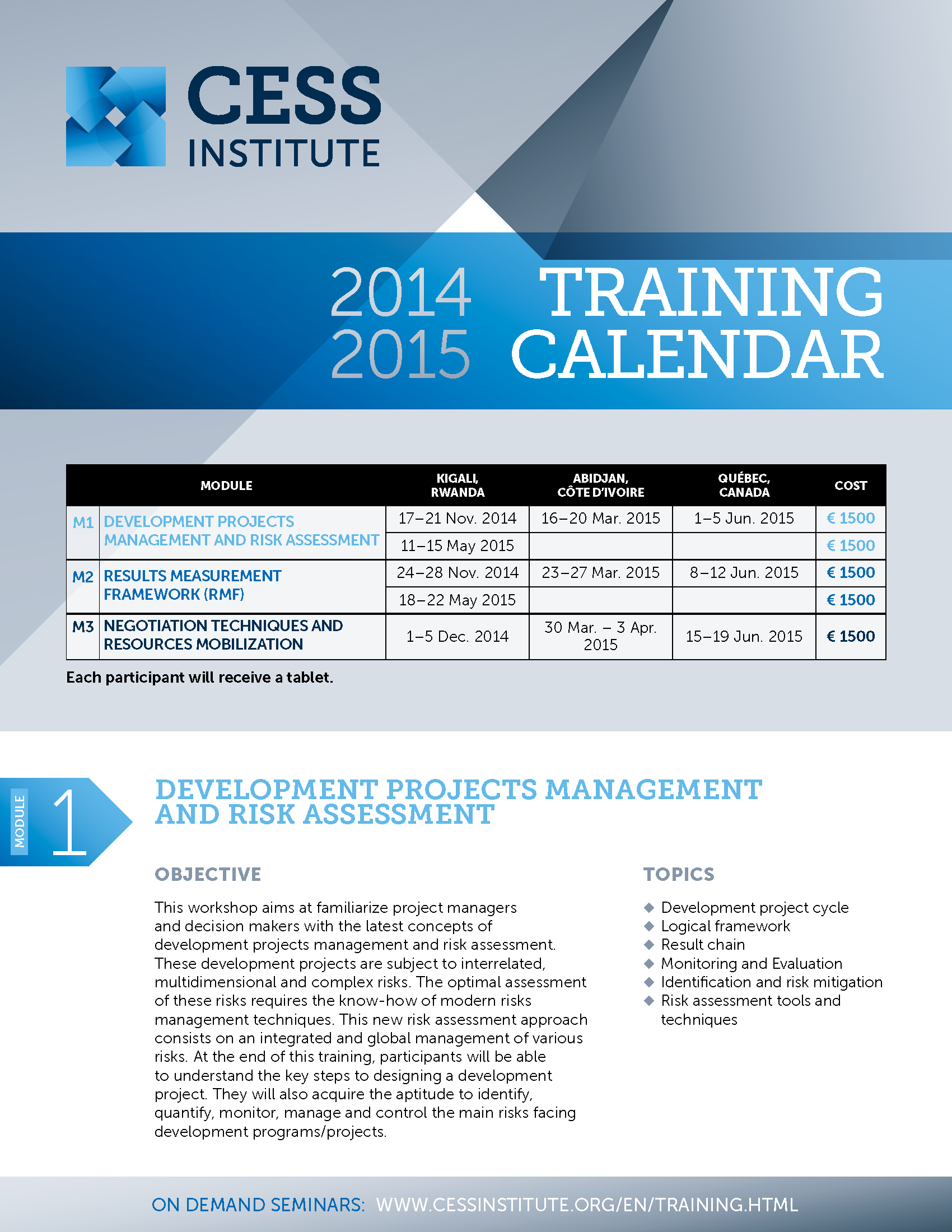 CESS Institute is pleased to introduce you its 2014-15 training workshops, to be held in:
